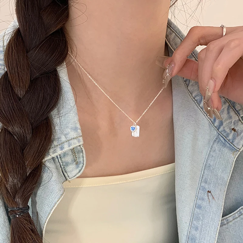 ✨ Elevate your style with our stunning Blue Heart Pendant Necklace, made from premium 925 sterling silver. This exquisite piece features a good luck tag design, perfect for any occasion, whether it's a party, wedding, birthday, or even a Christmas gift.