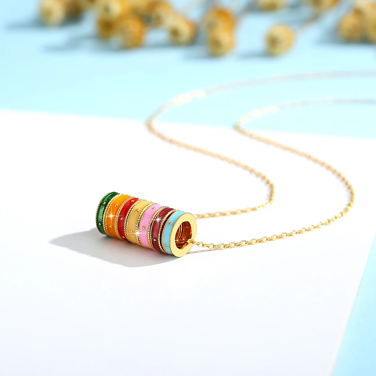 Pendant Metal: 100% Real 18K GoldPendant Stamp: AU750Metal Color: Yellow GoldMain Stone: EnamelCertificate: With Real 18K Gold CertificateChain Metal: 100% sterling silver and gold platedChain Length: 45CM
