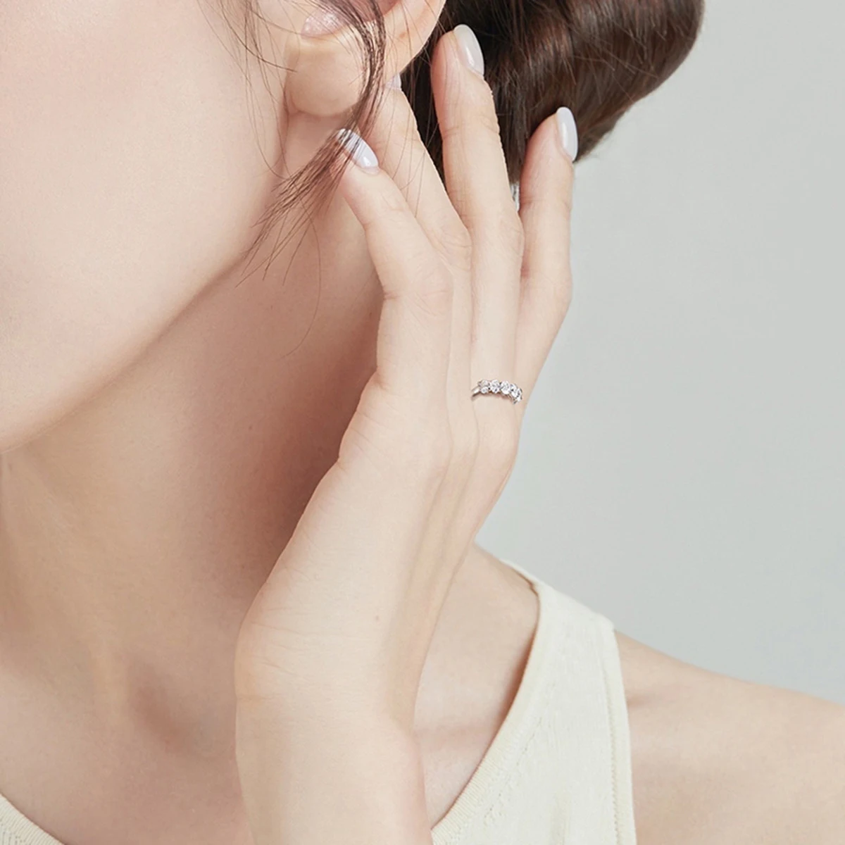 Moissanite 5 Stone Wedding Band - 925 Sterling Silver Ring