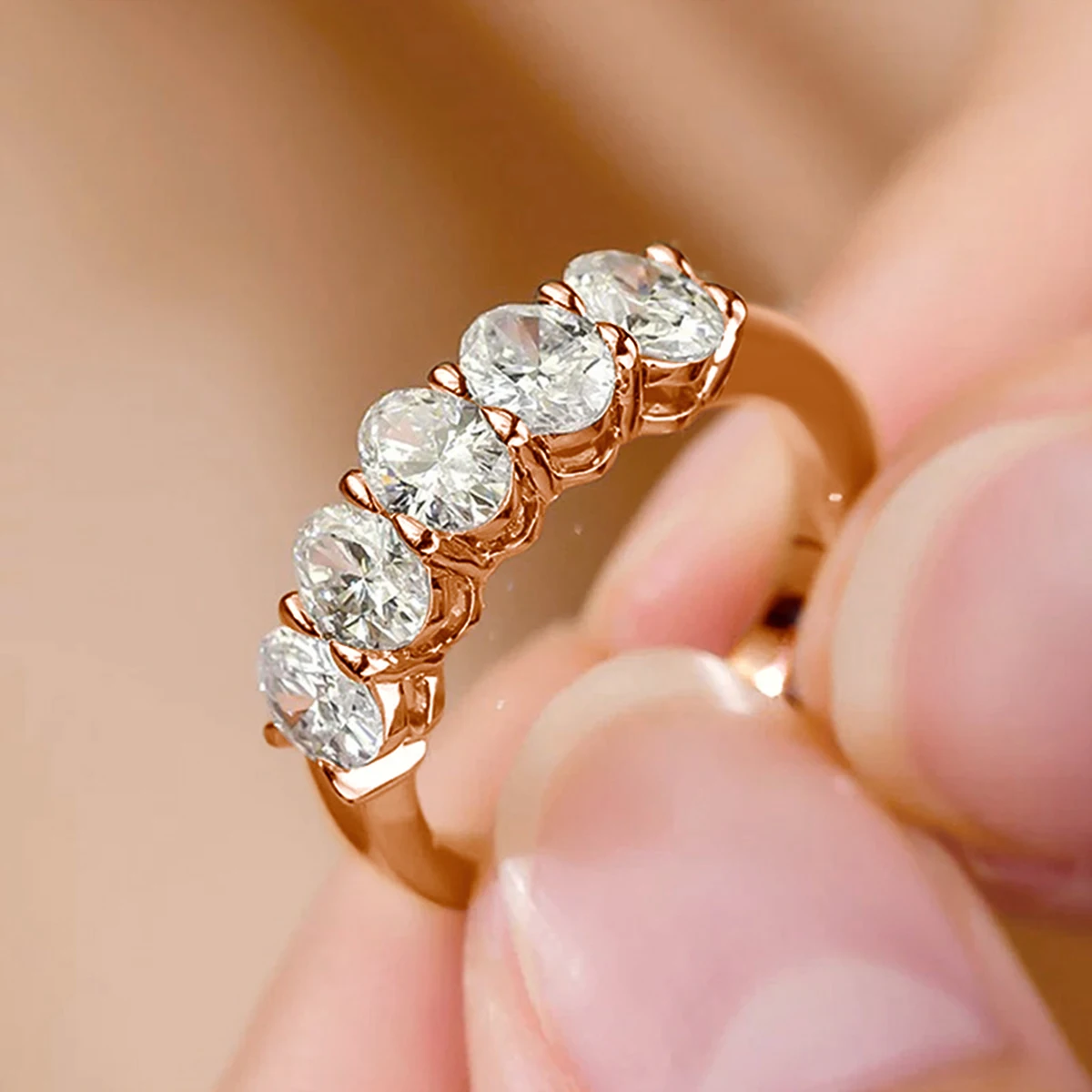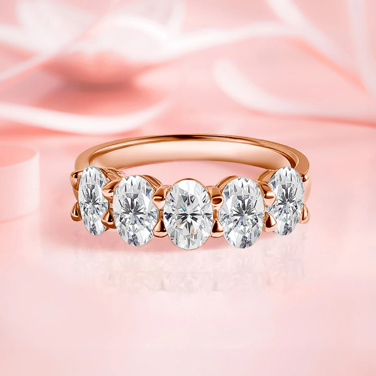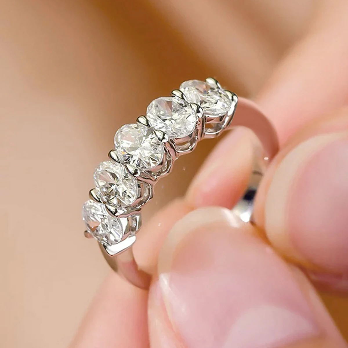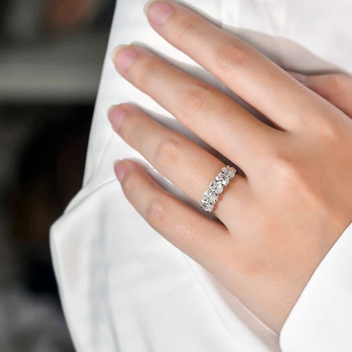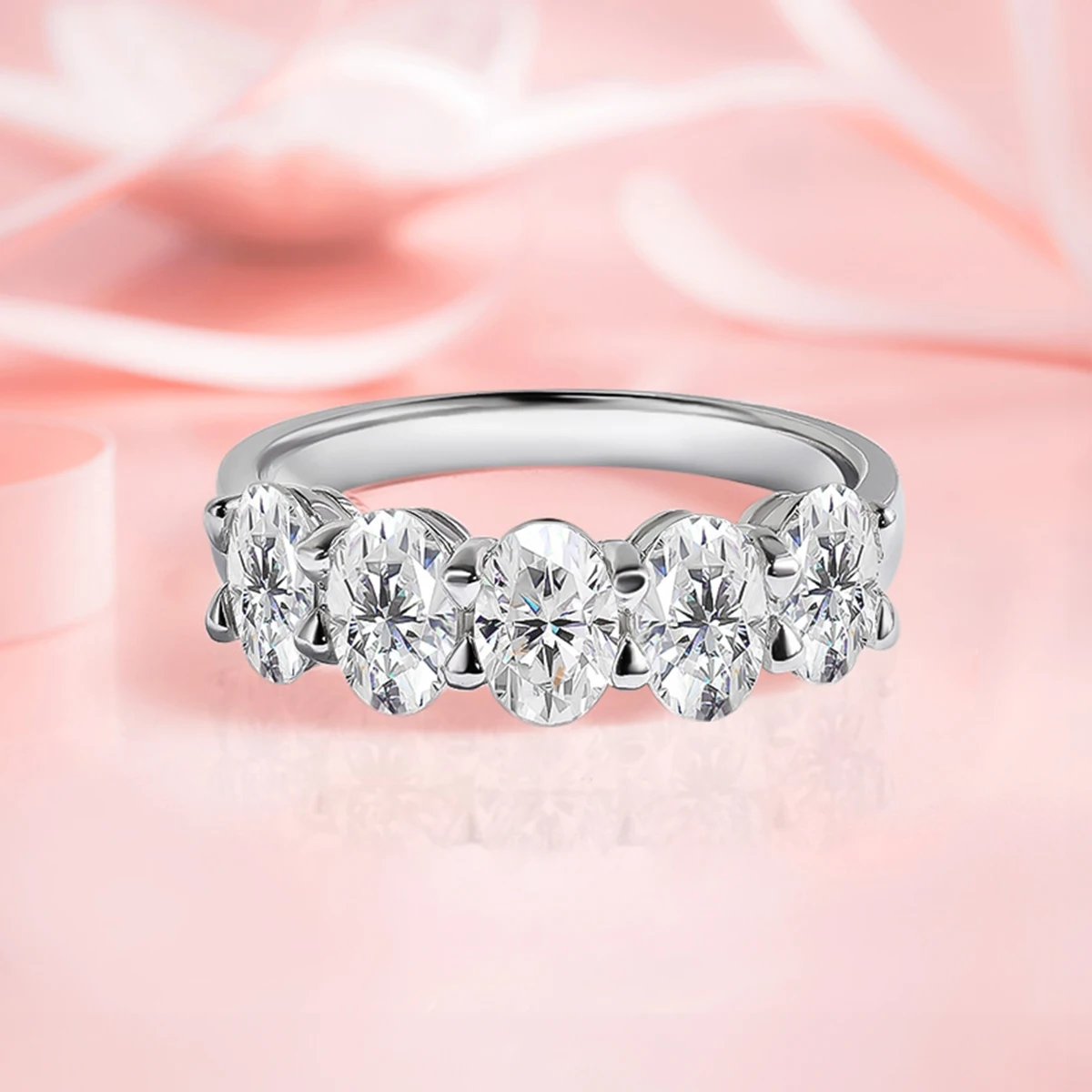 💍 What is it - Elevate your love story with our stunning 5 Stone Oval Moissanite Wedding Band. Crafted in premium 925 sterling silver, this elegant ring features high-quality D Color Moissanite, renowned for its brilliant sparkle and clarity (VVS1). Each ring comes with a GRA Certificate, ensuring authenticity and brilliance.