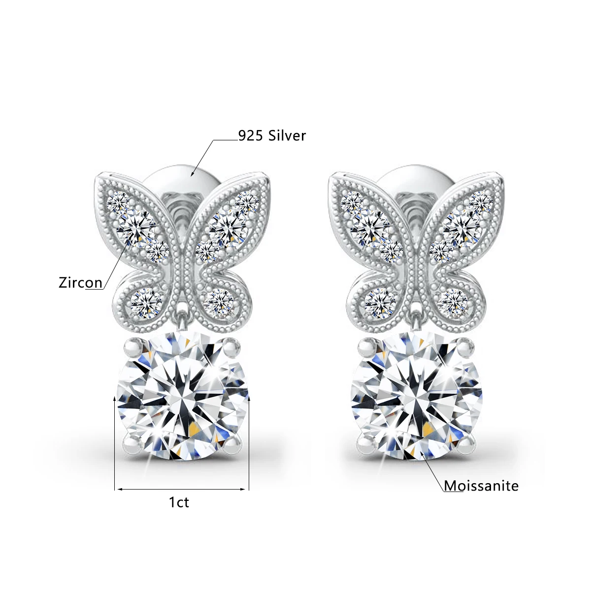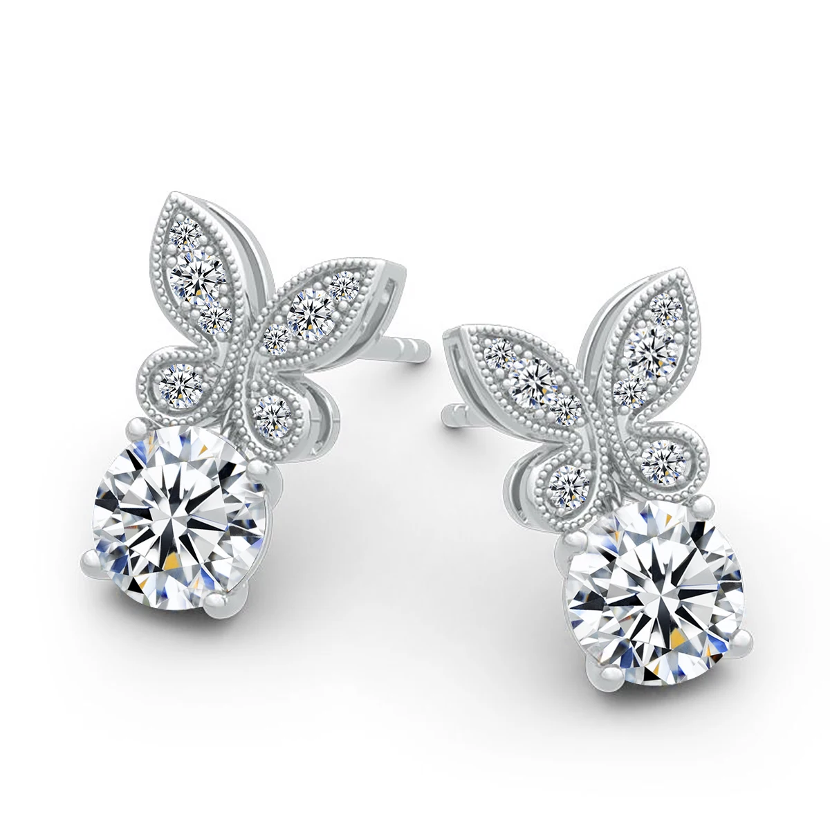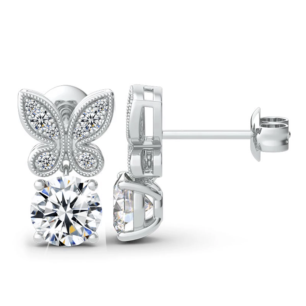 VVS1 Moissanite Butterfly Earrings - 2.0ct