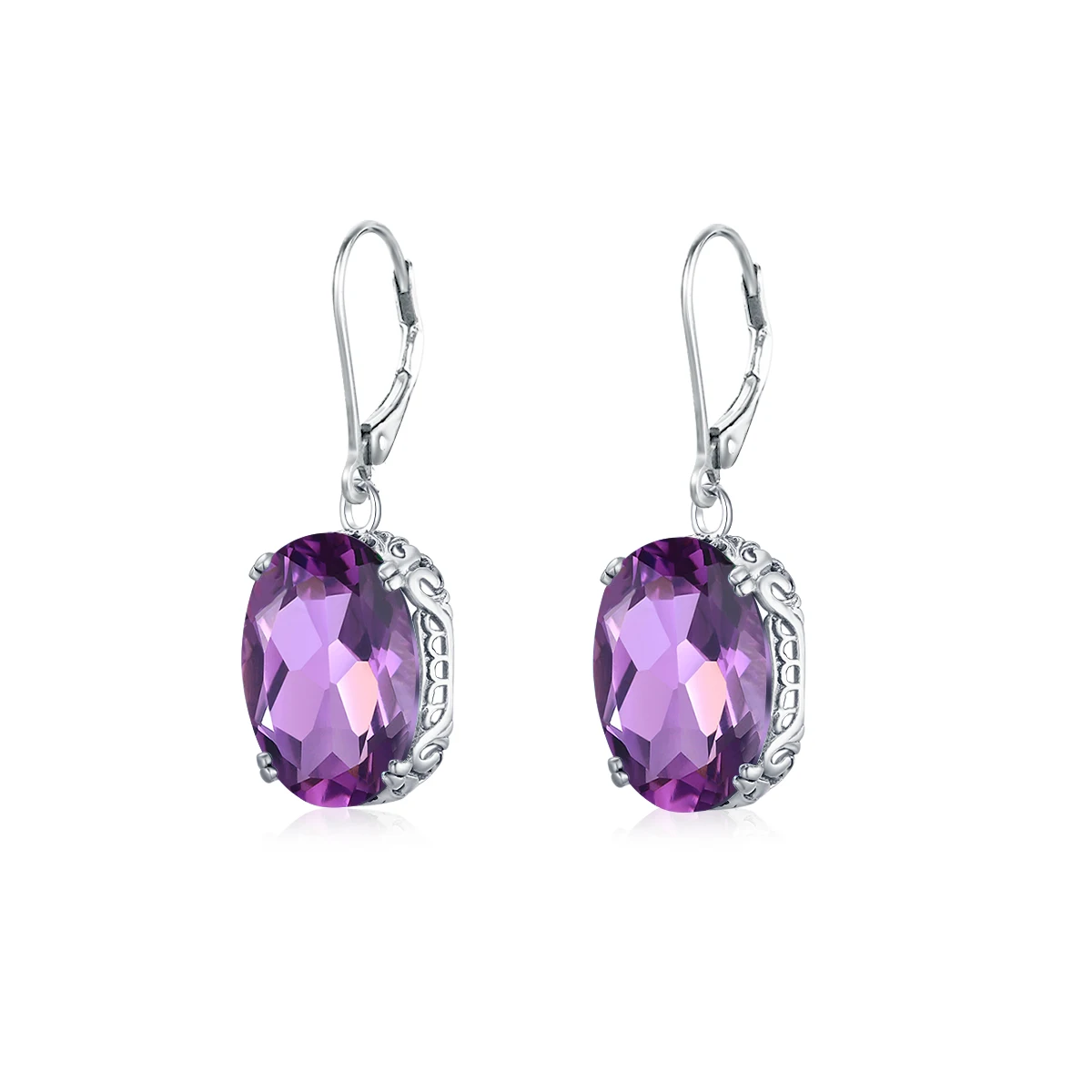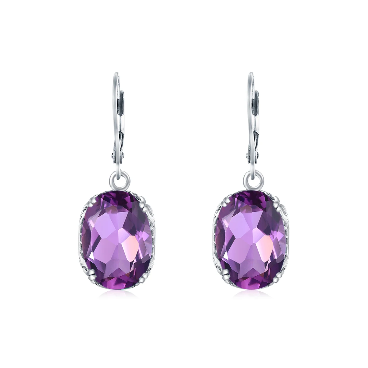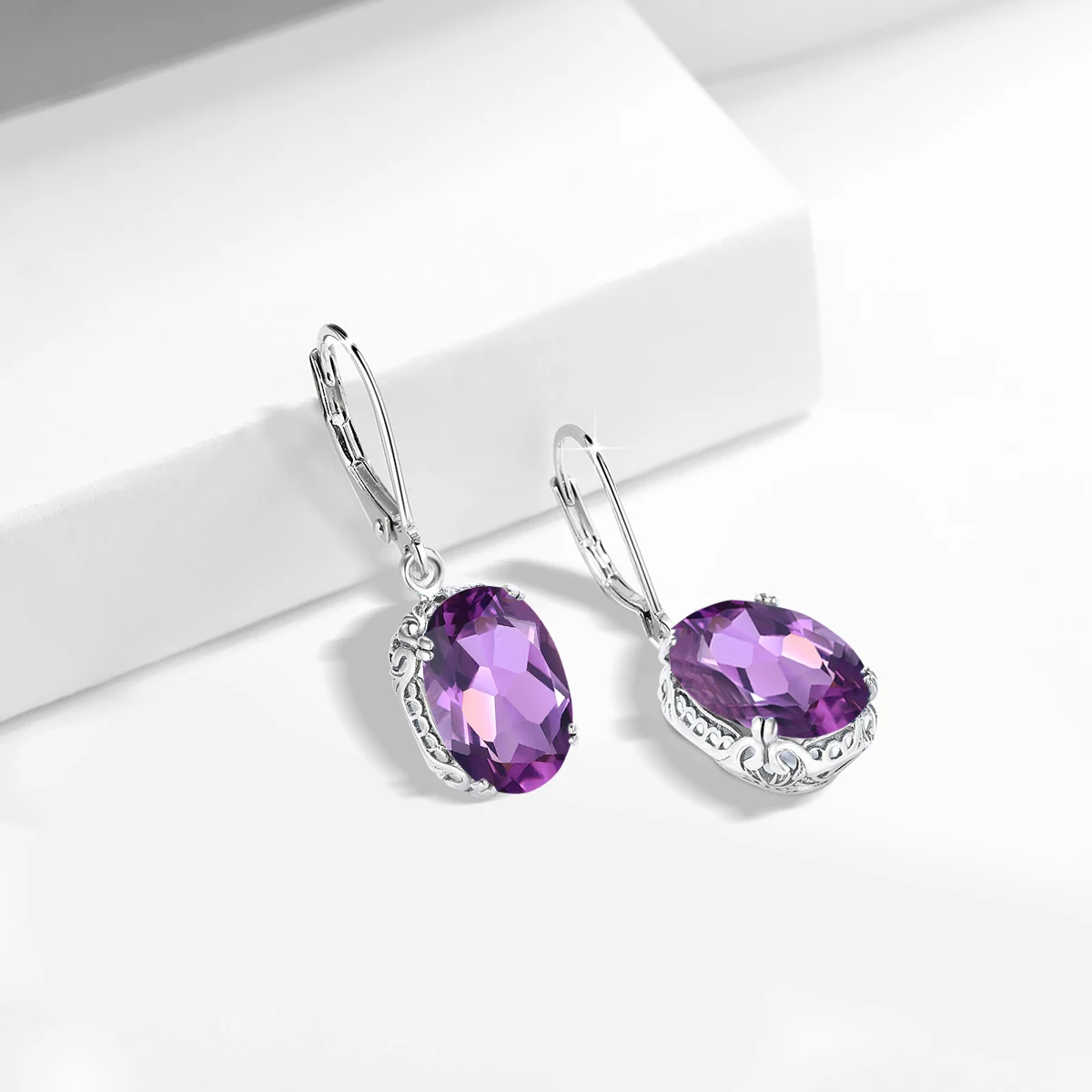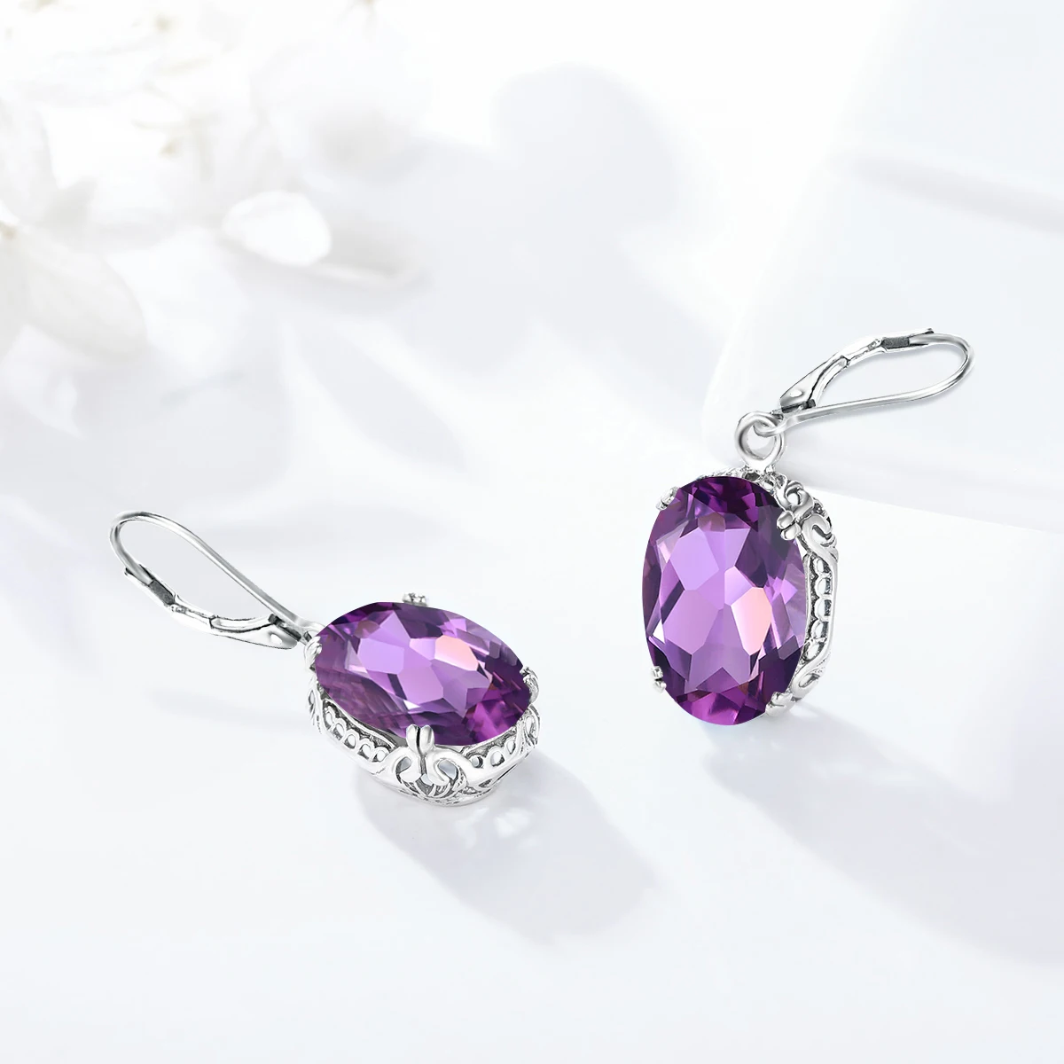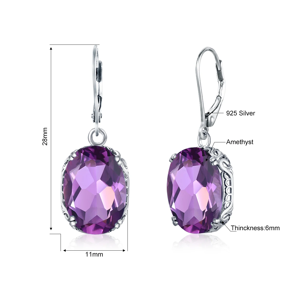 💜 What is it - Elevate your style with these exquisite Vintage Amethyst Drop Earrings, crafted from 925 Sterling Silver and featuring stunning synthetic amethyst stones that shine with exceptional cut. Perfect for any occasion, these earrings come beautifully packaged in a gift box, making them an ideal present for yourself or a loved one.