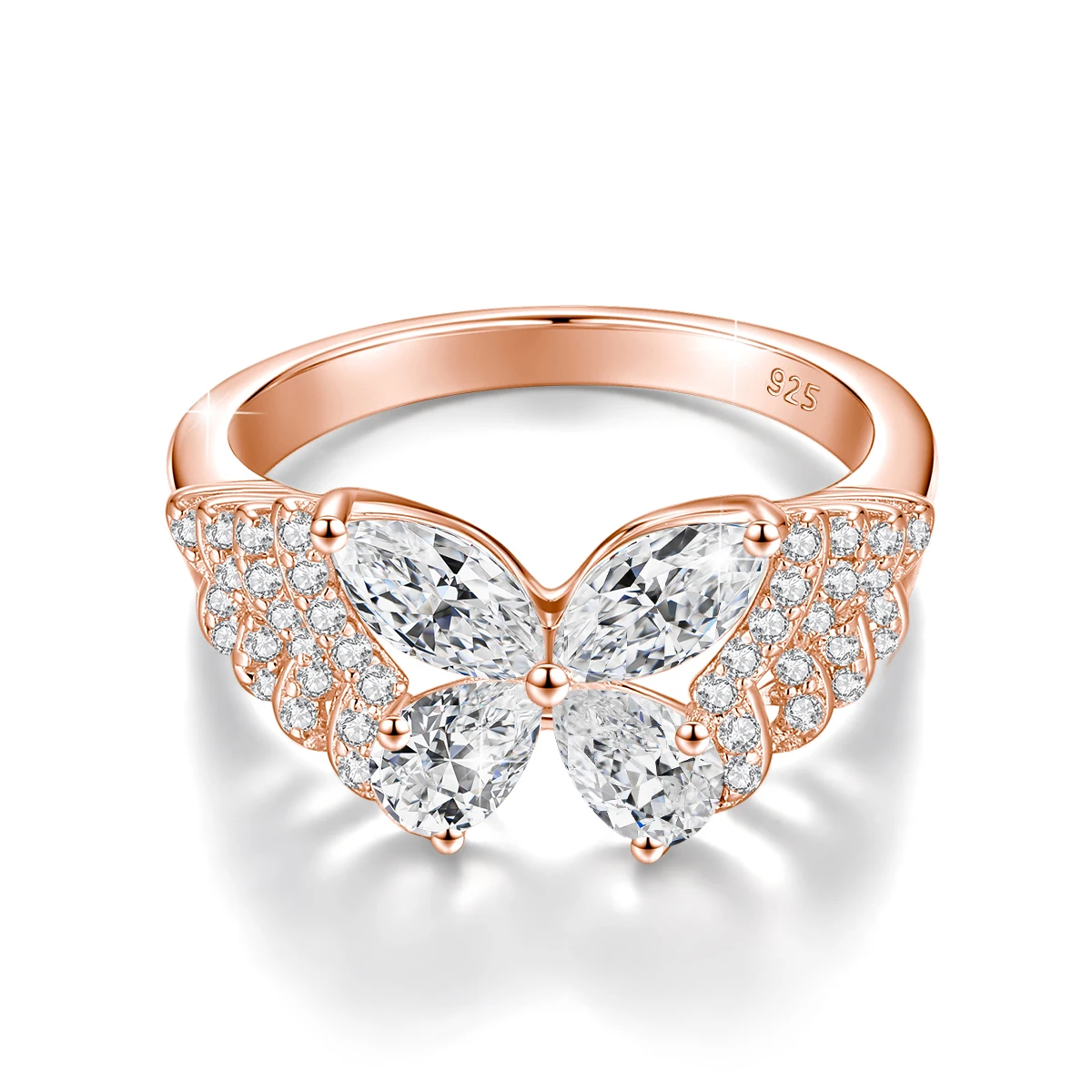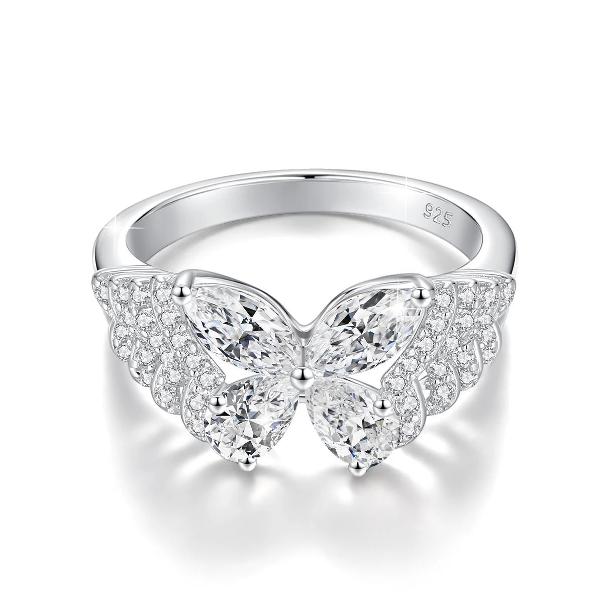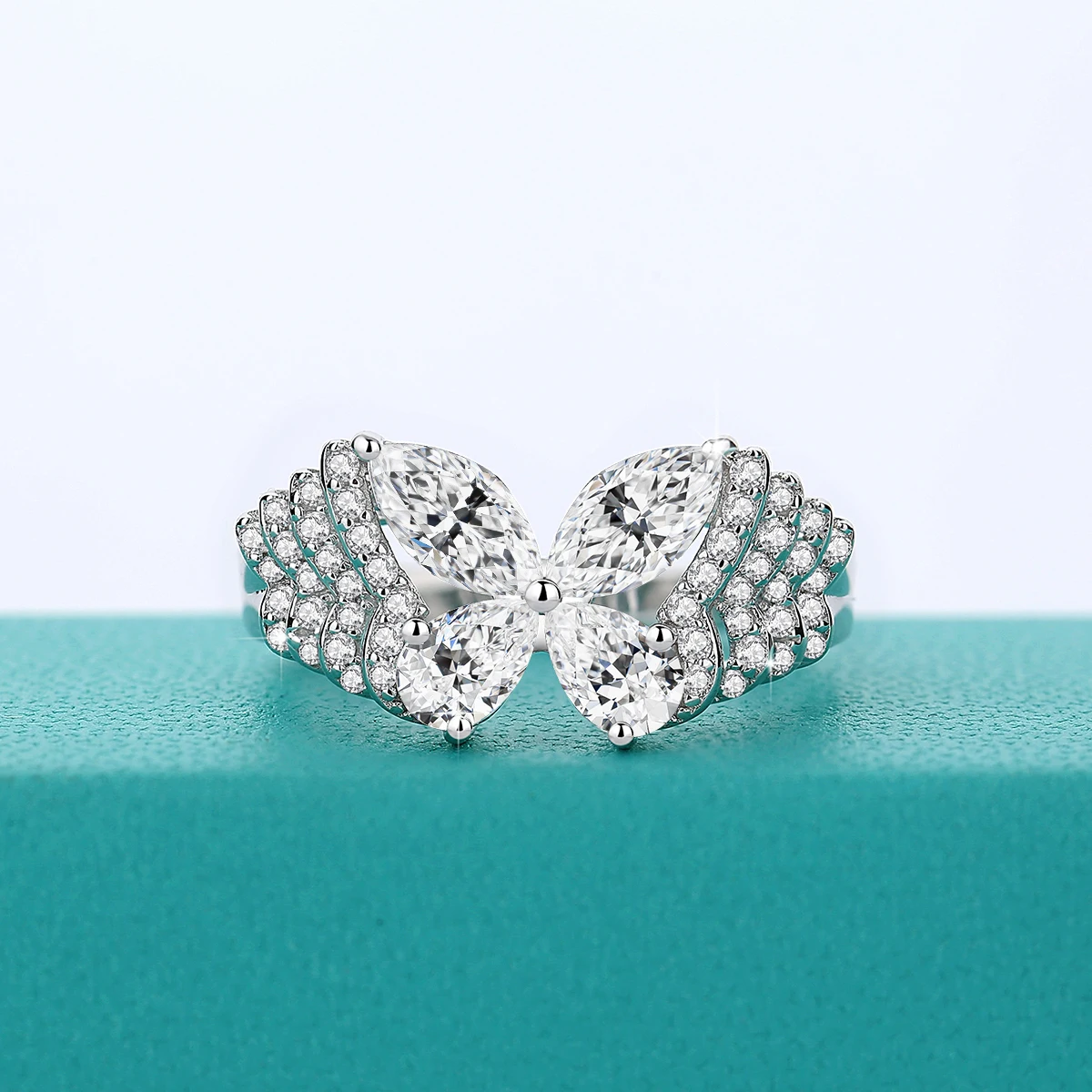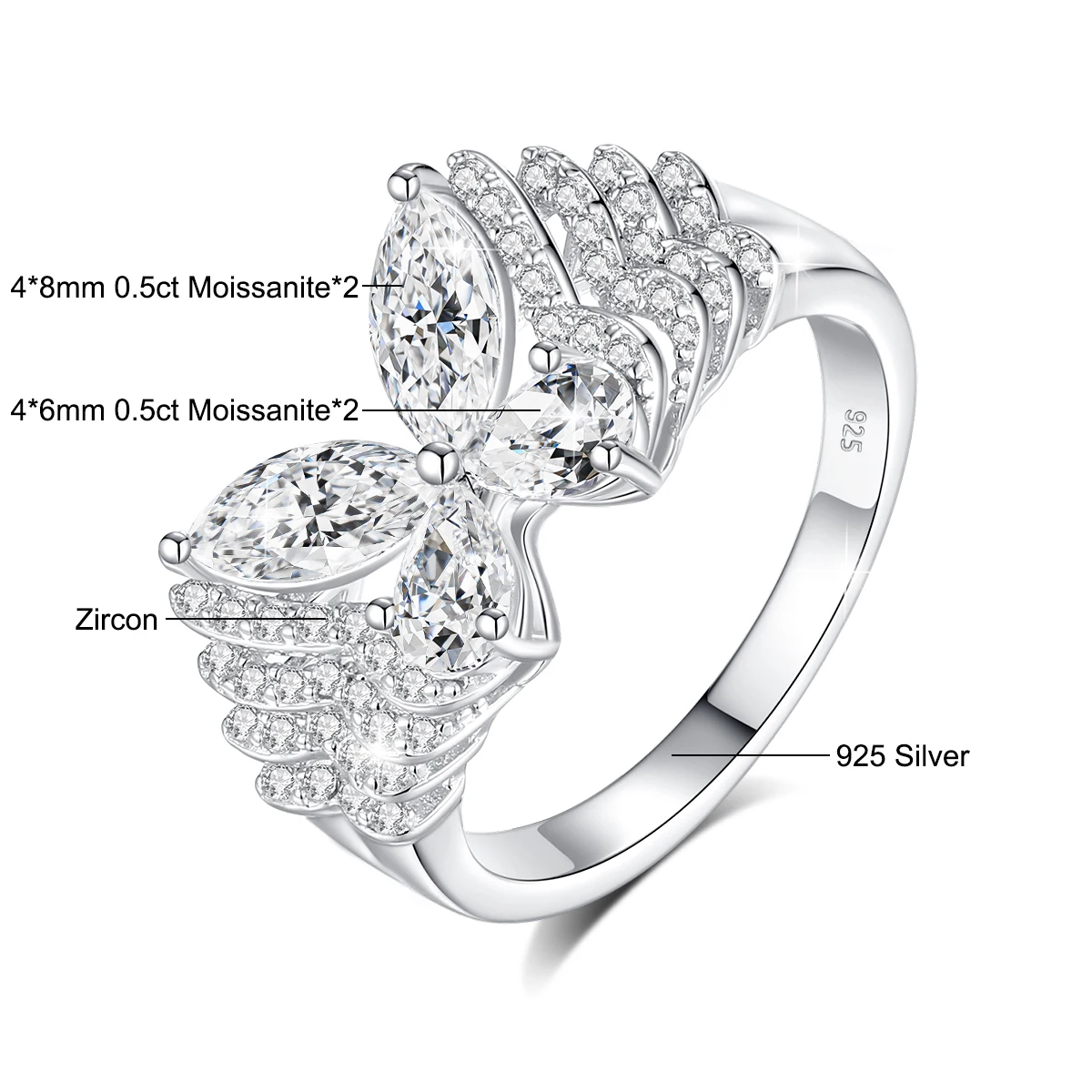 Luxury Moissanite Butterfly Ring in Sterling Silver