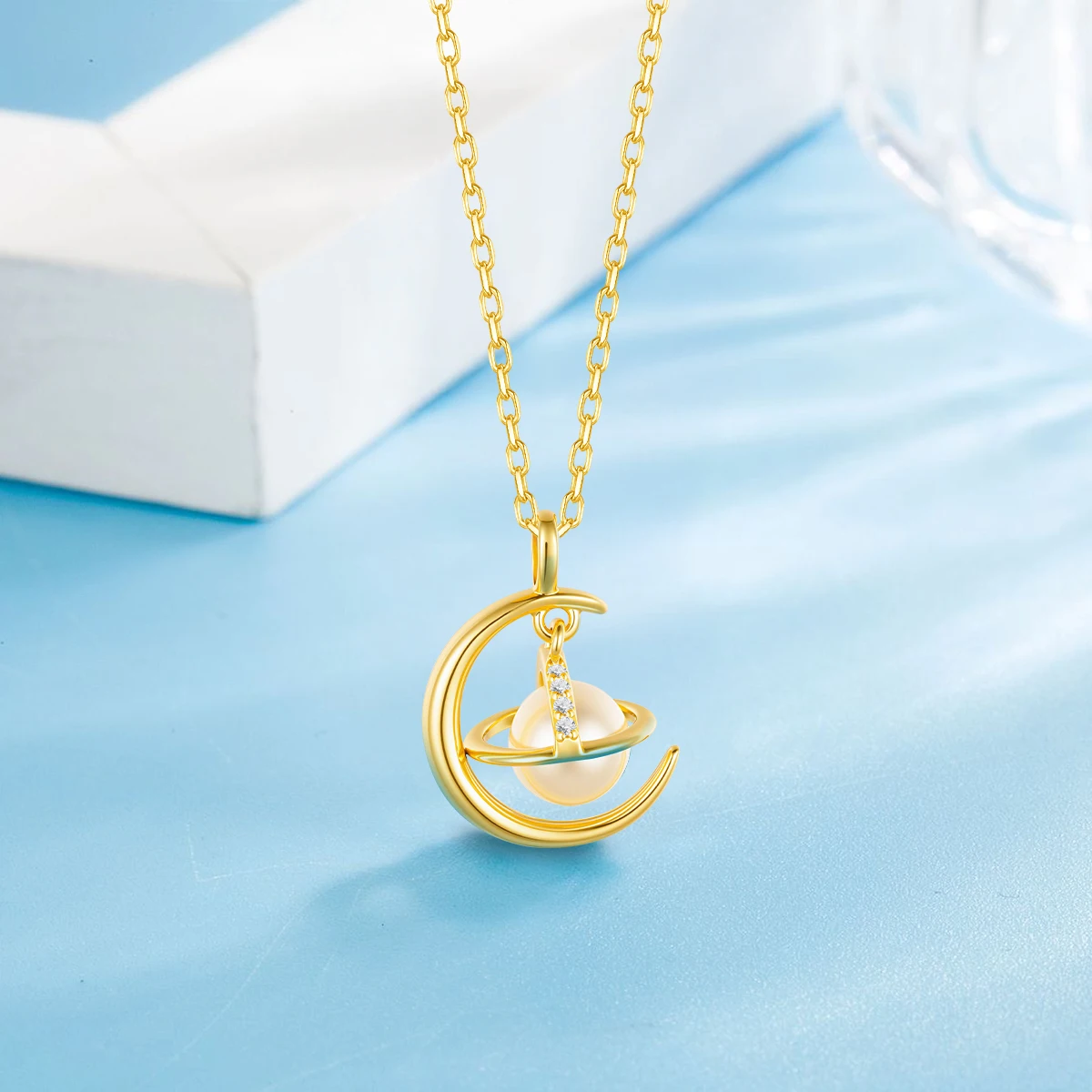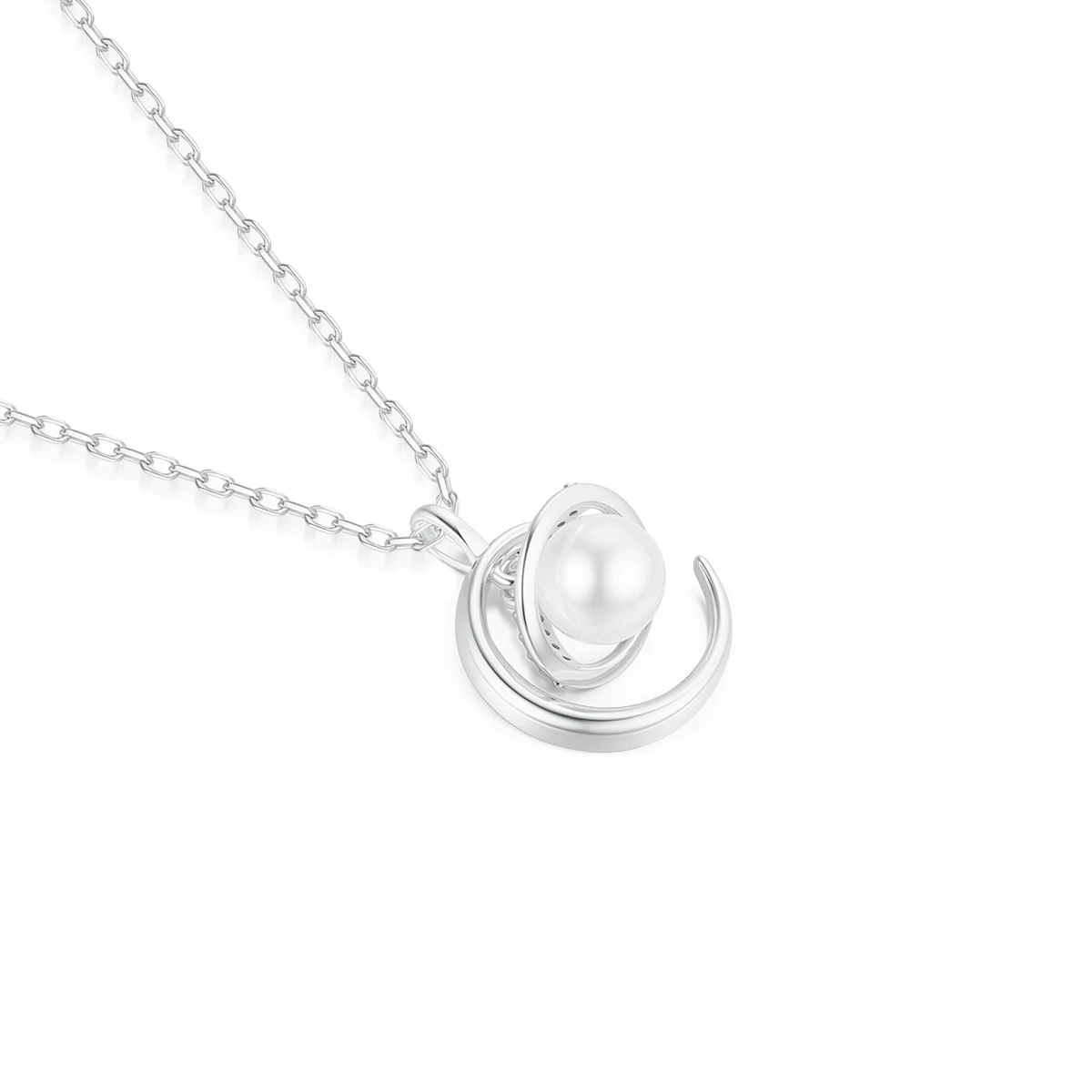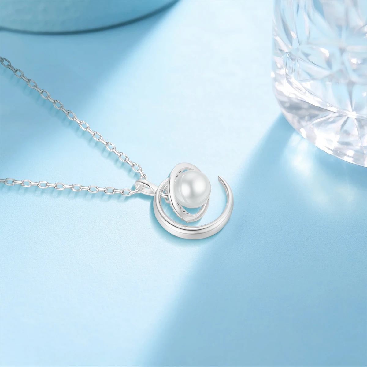 Freshwater Pearl Necklace 925 Sterling Silver Moon Earth Pendant