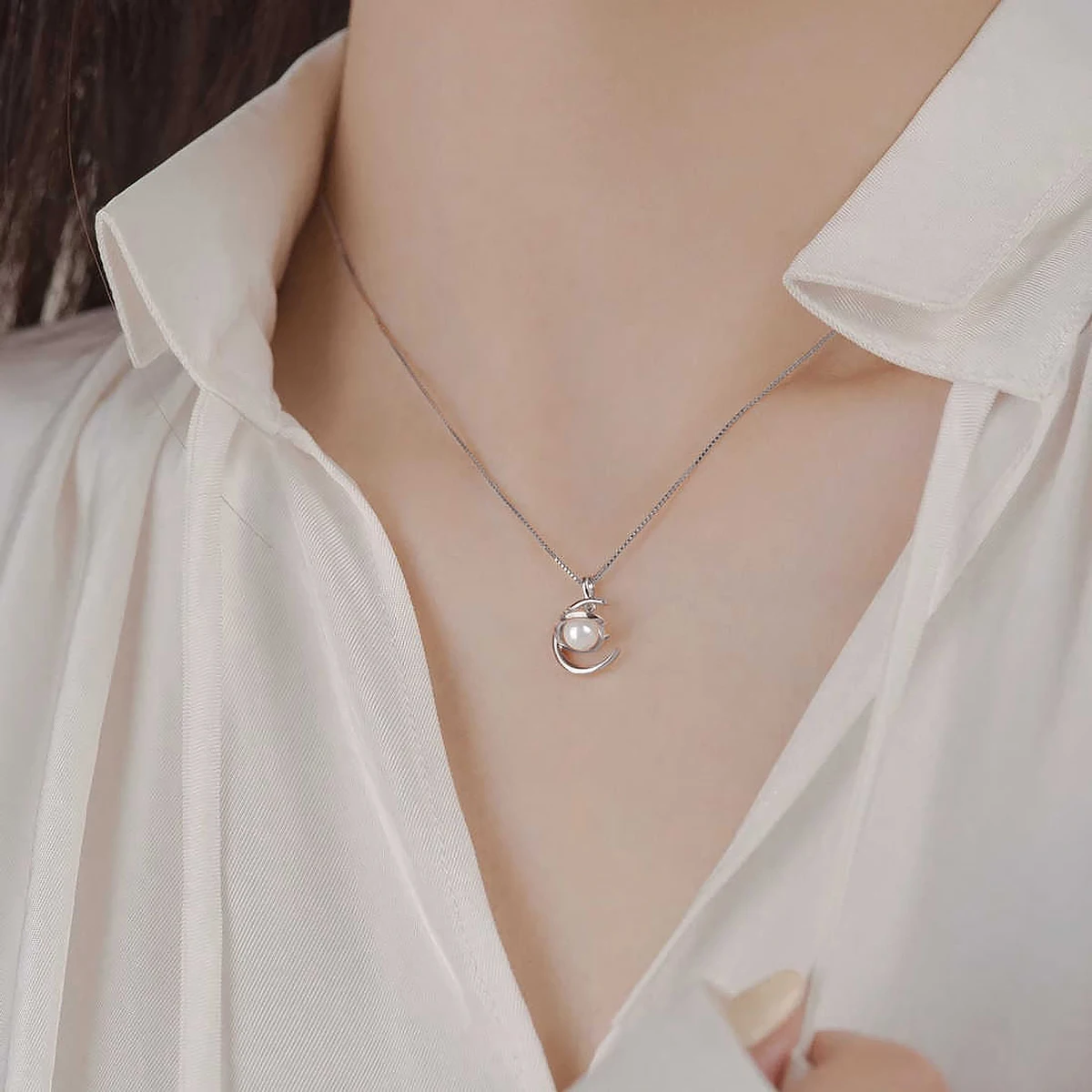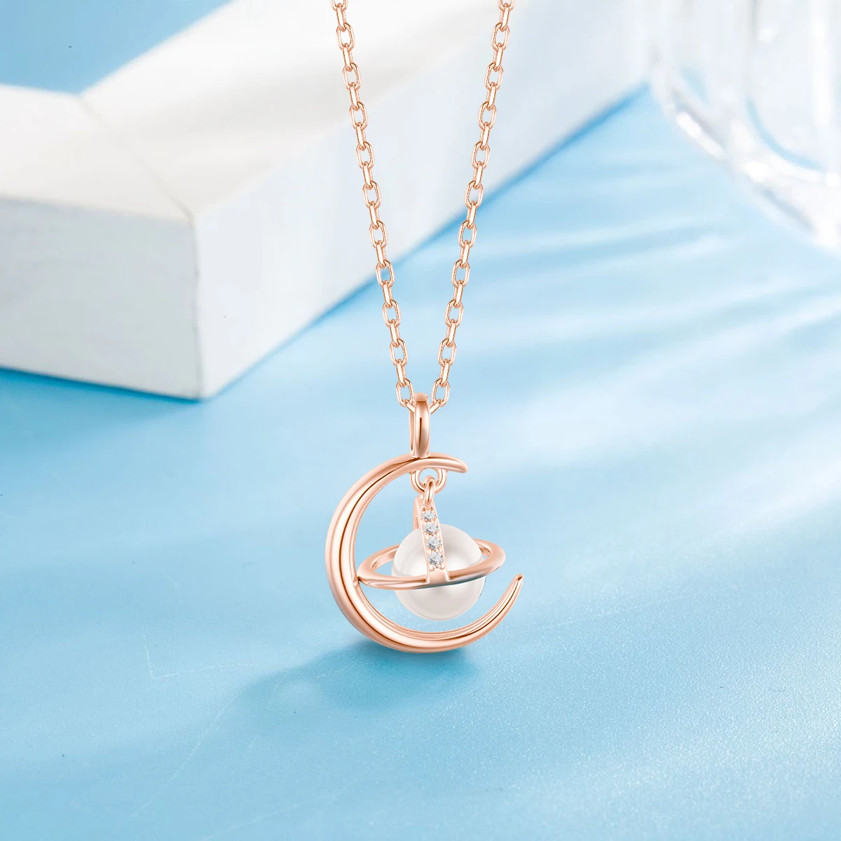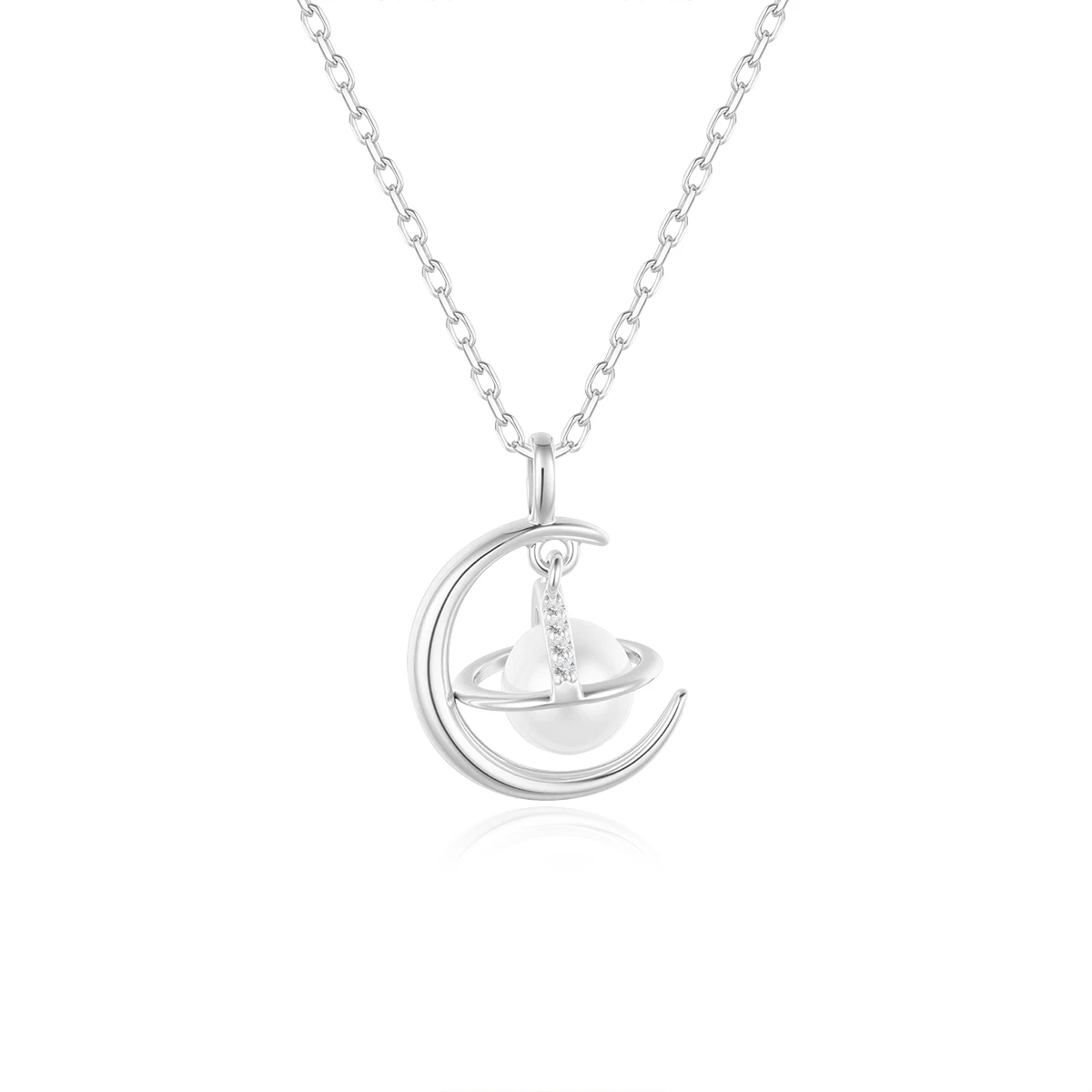 Freshwater Pearl Necklace 925 Sterling Silver Moon Earth Pendant